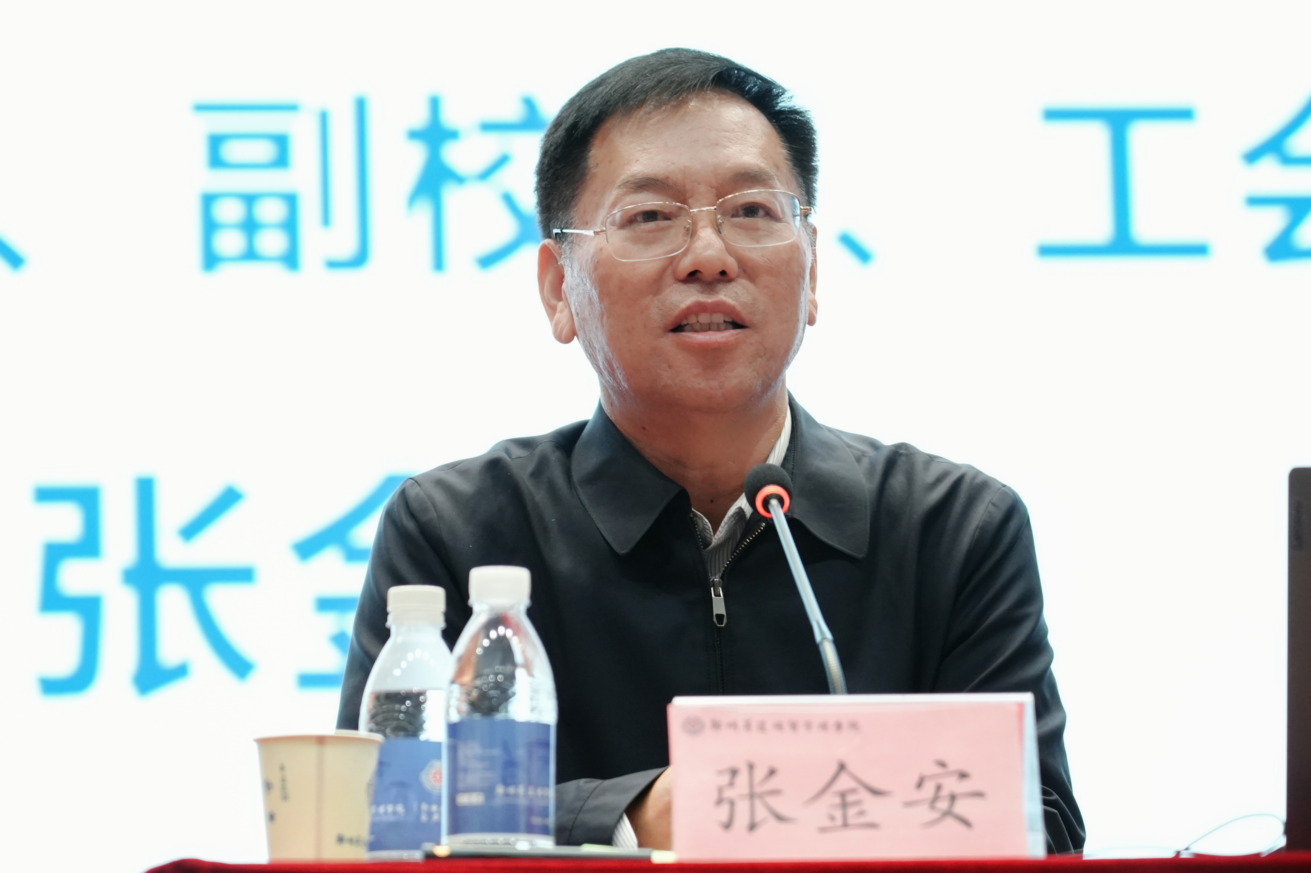 秋光正好启新志,风华正茂向未来。为全面落实立德树人根本任务,以习近平新时代中国特色社会主义思想引领青年成长,9月26日上午,我校召开2025级新生入学教育大会,副校长张金安、张其武等校领导分别为2025级全体新生开展了三场生动而富有感染力的入学教育报告。会议由校长办公室主任郝艳海主持。