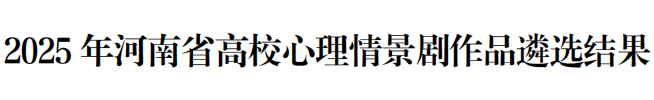 根据省委教育工委、省教育厅《关于2025年全省高校心理情景剧作品遴选结果的公示》,我校师生自主创作的心理情景剧《情绪快递》凭借鲜明的主题、生动的剧情及深刻的教育意义,成功荣获“全省高校心理情景剧特色作品” 荣誉,为学校心理健康教育工作再添亮眼成绩。