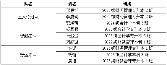 本次大赛聚焦企业数字化管理,分为线上热身赛和线下冲刺赛,比赛内容要求参赛学生运用数字化工具和技术,分析企业实际管理问题。校赛阶段共选拔三支队伍参赛,由会计学院庞瑞博老师和贺岚老师指导。线上热身赛环节,“三女夺冠队”获得第19名的成绩(排名前15%)并顺利晋级线下冲刺赛。“智趣星队”和“好运来队”均以排名前60%的成绩获得省级三等奖。