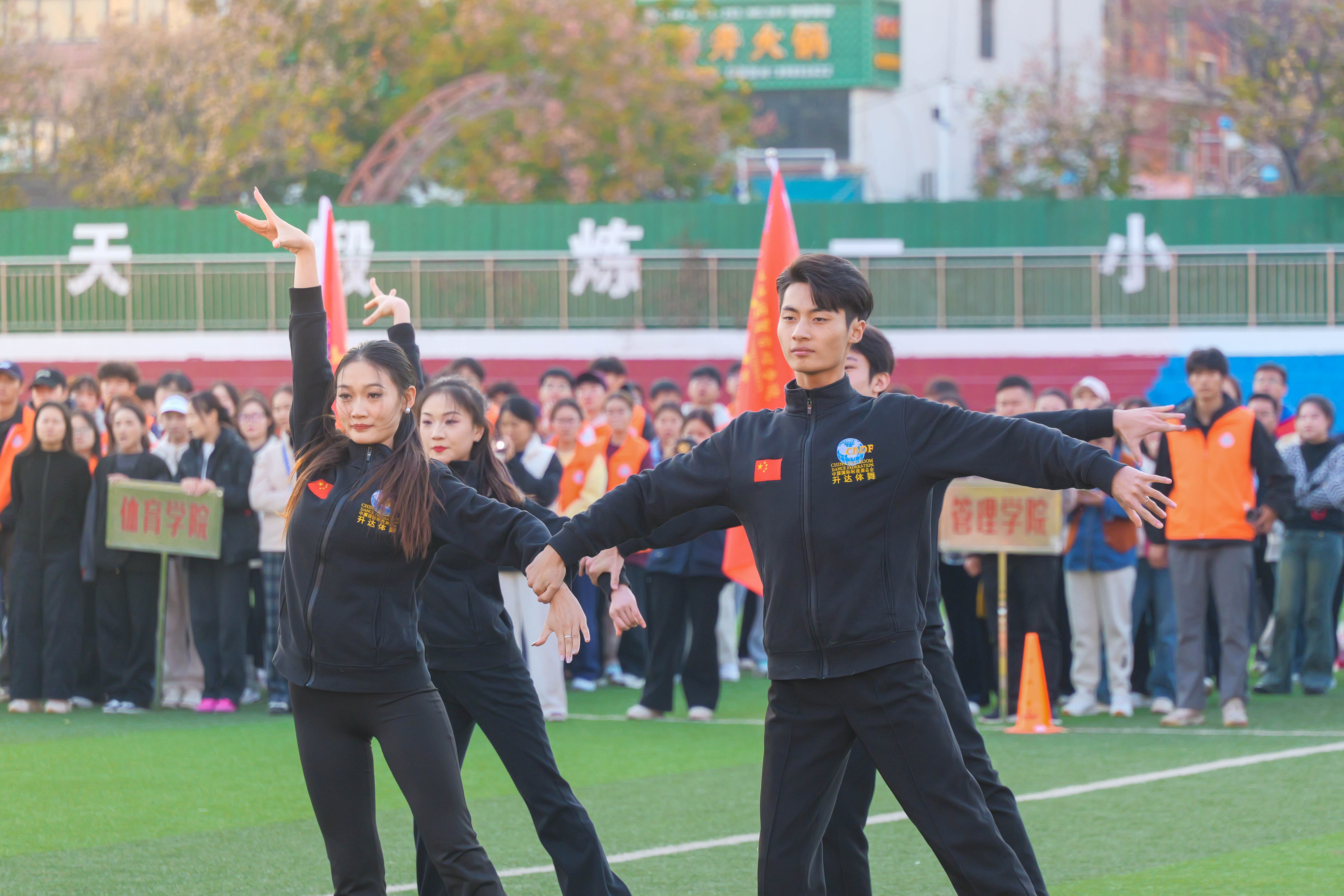 闭幕式由王新平主持,现场精彩迭起——体育学院选送的拉丁队列舞《舞动青春》舞姿灵动,排舞校队演绎的《你要跳舞吗》节奏明快,两支舞蹈轮番登场,瞬间点燃全场氛围,为闭幕式注入别样活力。