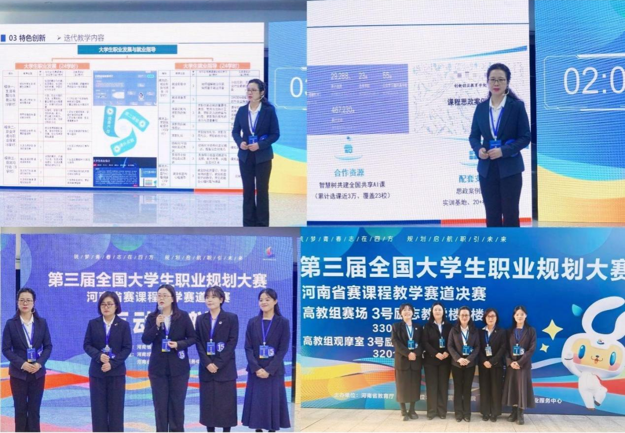 2025年11月22日至23日,由河南省教育厅主办,河南经贸职业学院、河南省大中专学生就业服务中心承办的第三届全国大学生职业规划大赛河南省赛教学赛道决赛隆重举行。我校创新创业教育学院教师张宁、刘桂芳、罗黎、张晓雪、贺莹莹组成参赛团队入围决赛,与全省100支优秀教学团队、600余名教师同台竞技,全方位展现我校职业规划与就业教育教学成果。