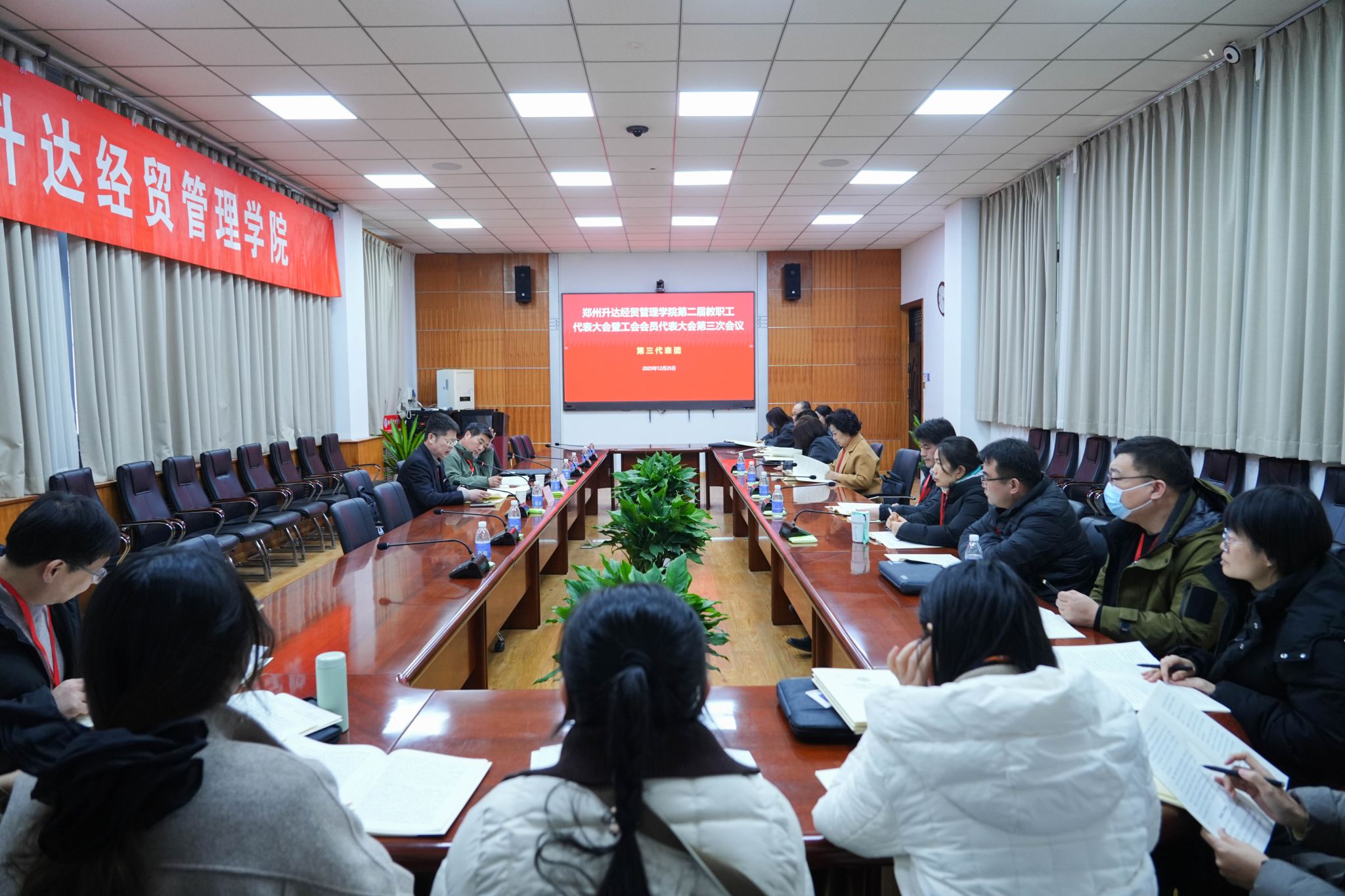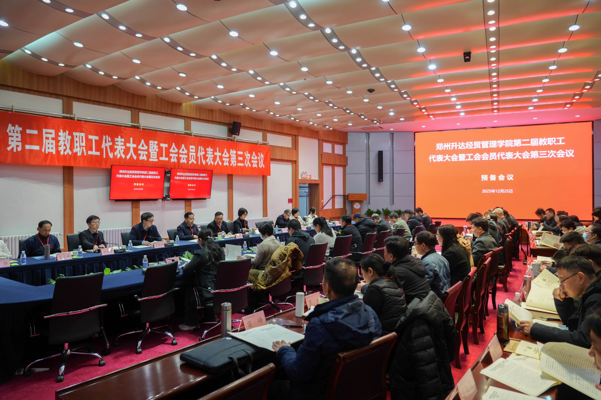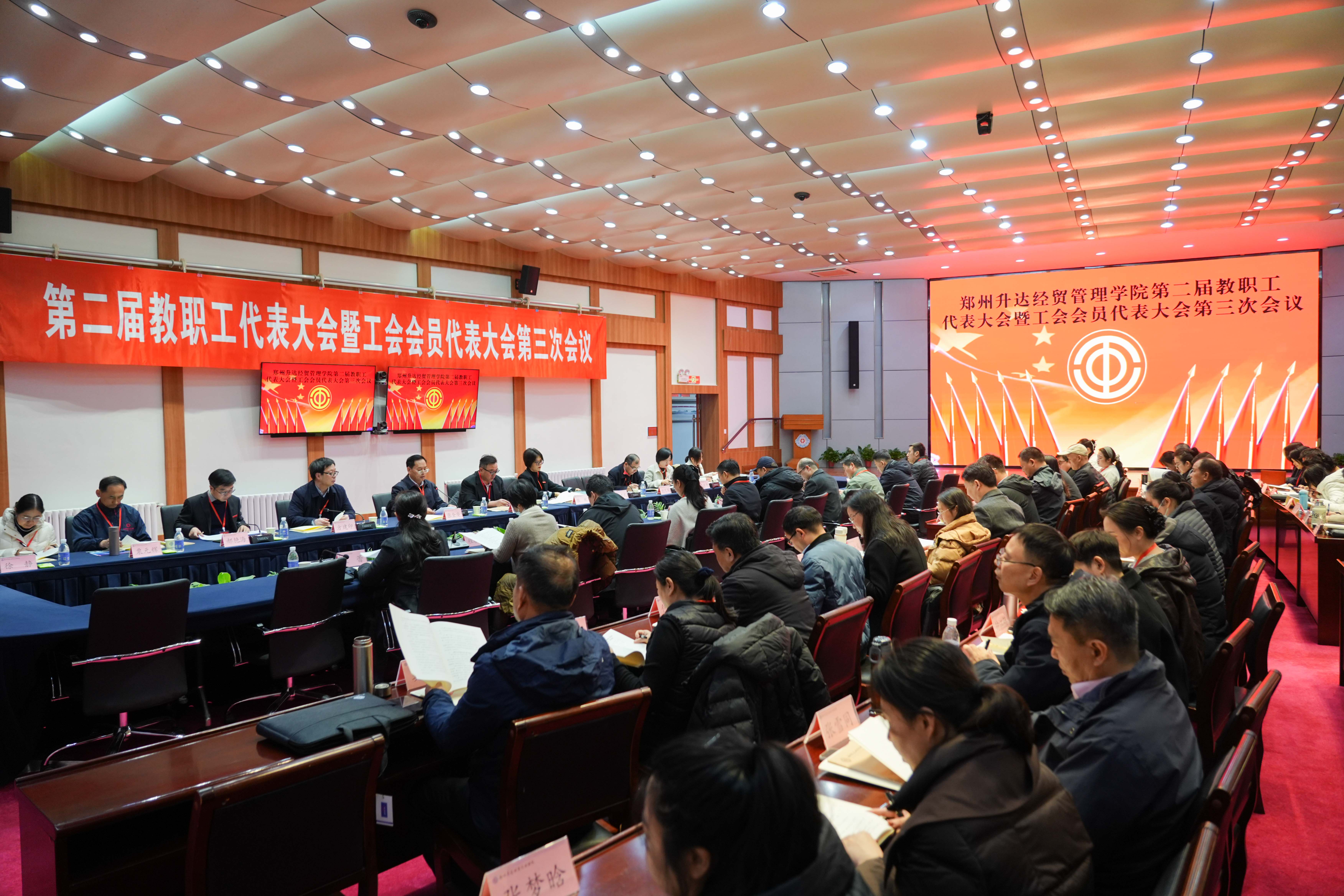 12月25日,为加强我校民主管理,充分发挥教职工行使民主权利、参政议政、民主管理的主人翁作用,我校第二届教职工代表大会暨工会会员代表大会第三次会议在国际会议厅隆重召开。董事长王新奇,校长、党委副书记张欣,党委副书记、副校长、工会主席张金安,党委委员、副校长张其武,登封校区党工委书记沈定军等校领导出席会议。