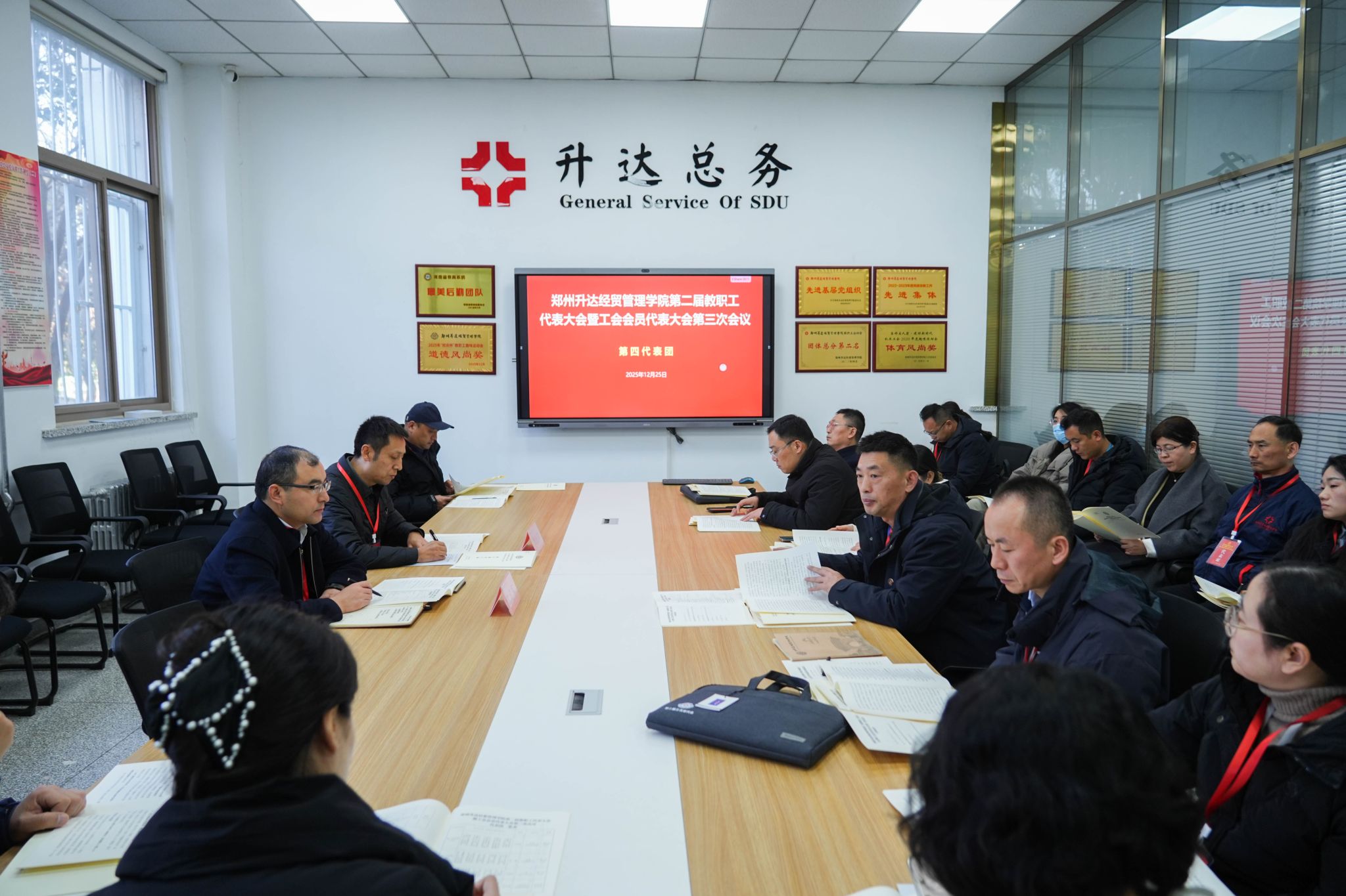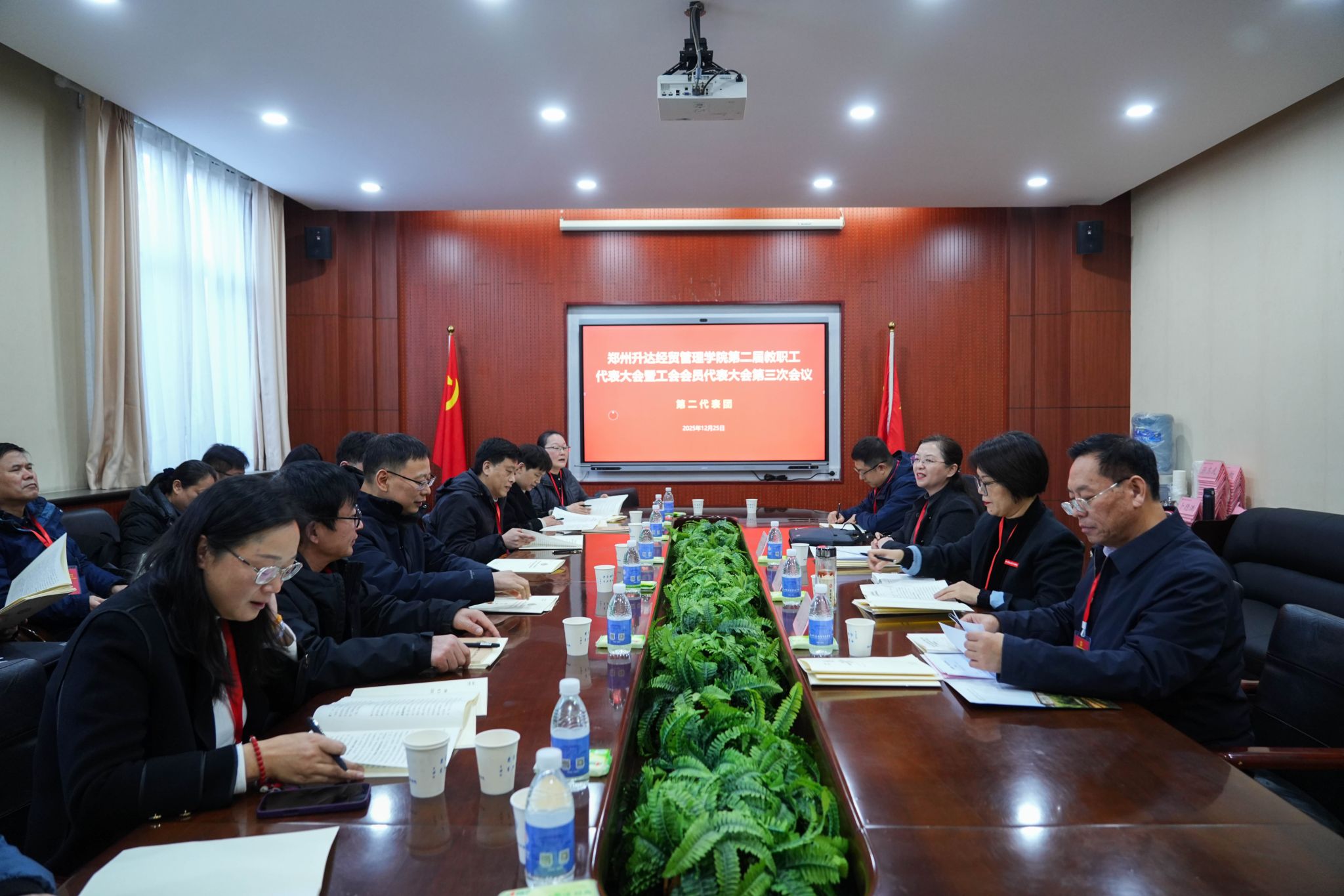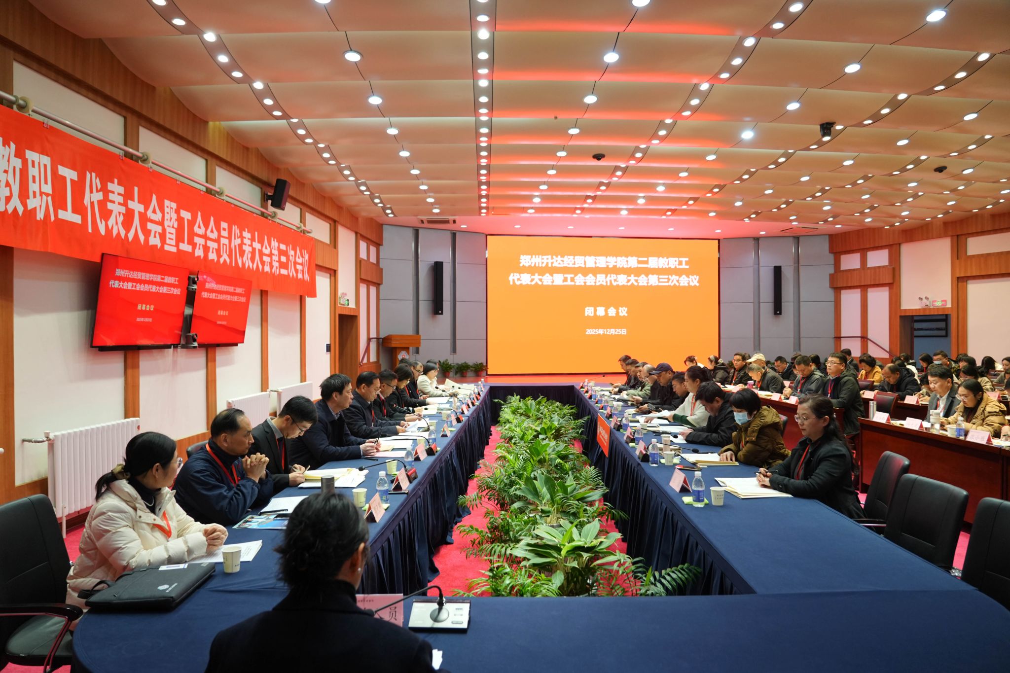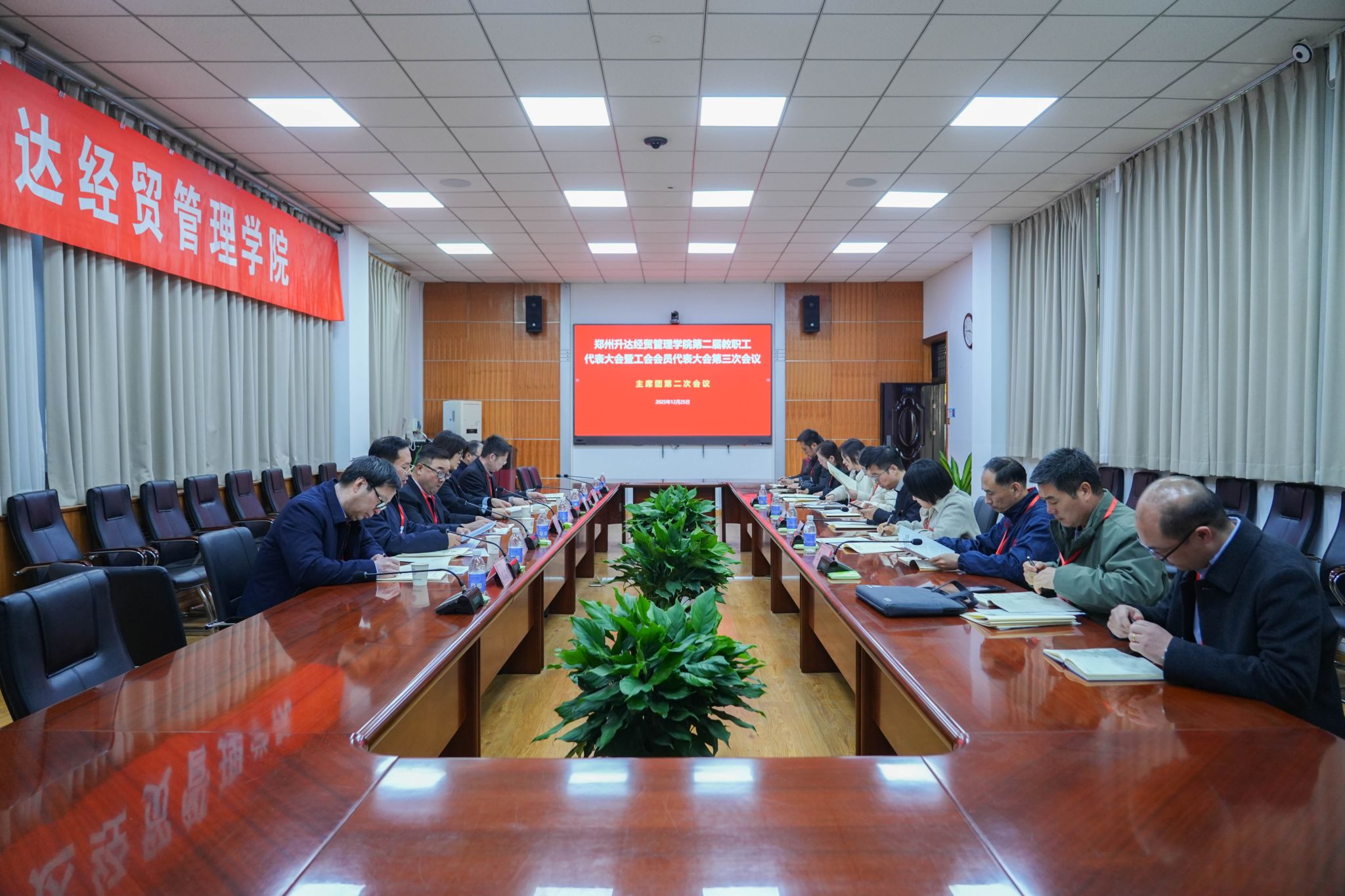 12月25日,为加强我校民主管理,充分发挥教职工行使民主权利、参政议政、民主管理的主人翁作用,我校第二届教职工代表大会暨工会会员代表大会第三次会议在国际会议厅隆重召开。董事长王新奇,校长、党委副书记张欣,党委副书记、副校长、工会主席张金安,党委委员、副校长张其武,登封校区党工委书记沈定军等校领导出席会议。