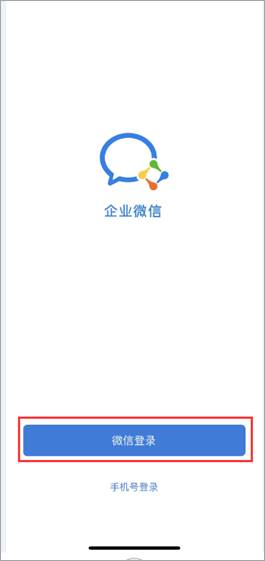 3.进入企业微信客户端后,点击“微信登录”加入企业微信;如果“微信登录”方式无法进入,请换用“手机号登录”方式。