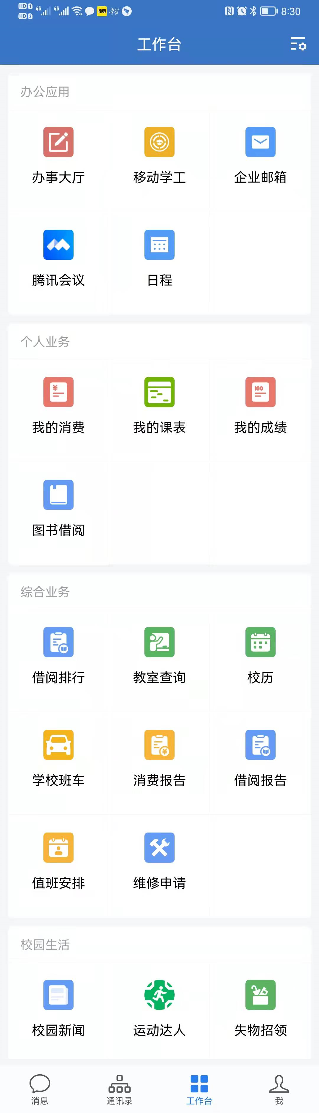 为满足广大师生对移动互联应用的迫切需求,适应公共交流平台快速不断发展的环境,进一步提升我校信息化服务水平,信息化处基于企业微信平台建设了学校信息化服务移动端平台,完成了企业微信扩容、通讯录与学校统一身份认证及腾讯会议的对接,目前已将办事大厅、移动学工、我的课表、教室查询等近20个应用服务同企业微信完成集成对接,已具备上线试运行条件。