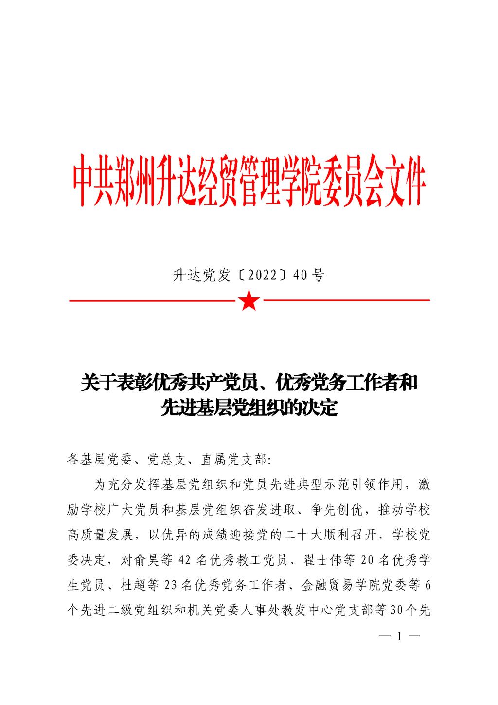 关于表彰优秀共产党员、优秀党务工作者和先进基层党组织的决定
