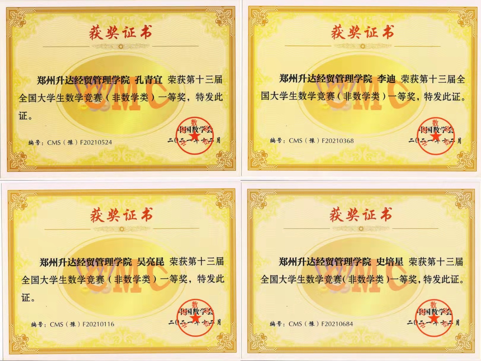 2021年第十三届全国大学生数学竞赛初赛,共50人在本次竞赛中荣获奖项:其中14名同学获得省级一等奖,14名同学获得省级二等奖,22名同学获得省级三等奖。