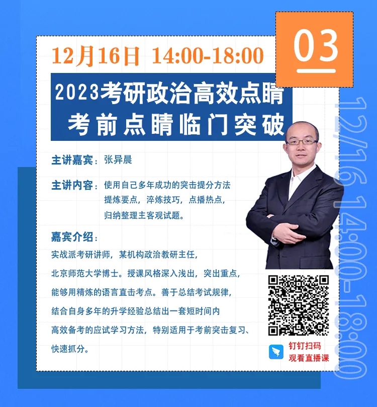 【直播主题】《2023年考研政治高效点睛,考前点睛临门突破》