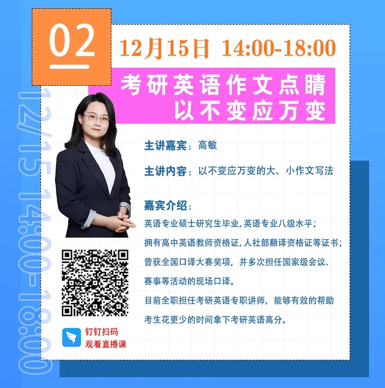 【直播主题】《考研英语作文点睛,以不变应万变》