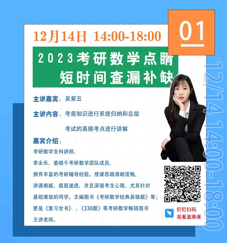 【直播主题】《2023年考研数学点睛,短时间查漏补缺》