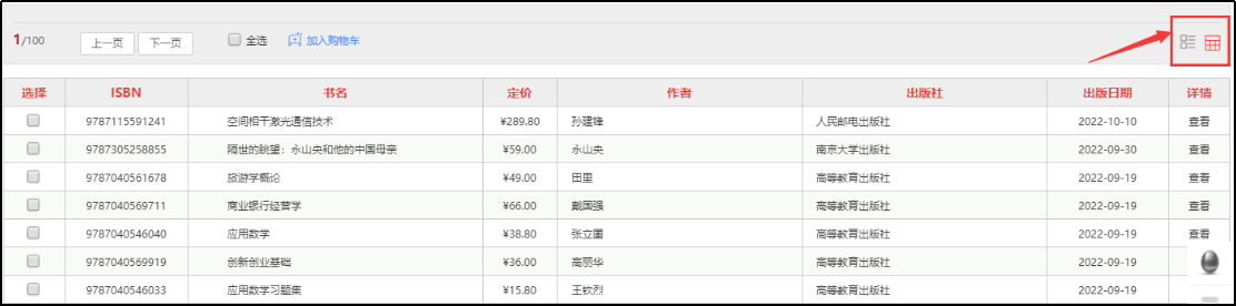 1.1、平台可按图书的出版时间、定价排序。也可按价格区间、出版时间段、重点图书【即图书馆关注的重点出版社】进行筛选。