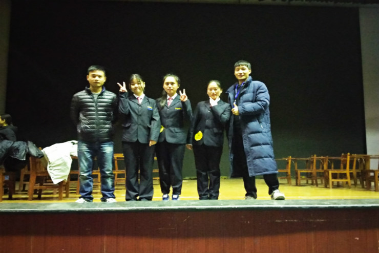 本次比赛成绩的取得离不开艺术学院领导的高度重视和参赛队员孜孜不倦的努力。参赛当天下午两点,参赛队员宗月华、黄建蓉、李雪可、王赛赛齐聚艺术系413办公室,与指导老师郭称心、杨东、张速杰共同学习《河南省高校学生资助手册》,集体讨论知识要点。直至上台之前,参赛队员仍在后台认真复习重点知识。