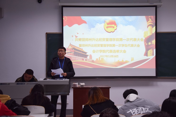 按照校团委安排,经会计学院党总支同意,会计系团委于12月28日晚上6:40、7:50在综合楼321室隆重召开了会计学院学生代表大会代表选举大会和团员代表大会代表选举大会。大会由会计学院团委书记陈刚老师亲自主持,校团委组织部部长李松涛老师、会计学院团委常务副书记蔡艳丽老师作为会计学院选区团代表候选人,以及各个班级团支部推选出来的代表候选人共聚一堂,参加了此次选举大会。