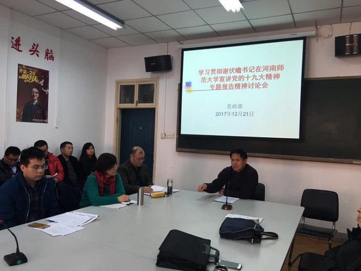 根据学校政治学习安排,12月21日下午,思政部组织全体教师学习贯彻谢伏瞻书记在河南师范大学宣讲党的十九大精神专题党课报告精神。会议由党支部书记窦峰主持。