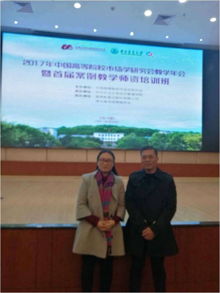 2017年12月8日至10日,由中国高等院校市场学研究会主办,华中农业大学经济管理学院承办,高等教育出版社和湖北省市场营销学会共同协办的2017年中国高等院校市场学研究会教学年会暨首届案例教学师资培训班在华中农业大学召开。为了提高市场营销专业教师的教学水平,我校商学院派出宁震霖老师和艾丹丹老师参会。本届年会共有来自北京大学、清华大学、复旦大学、南开大学、中欧国际工商学院、武汉大学、华中科技大学等全国各地120余所高校的400余名嘉宾参会,营销界大咖齐聚武汉,围绕“数字时代的营销教学创新——案例教学、课程设计与教材升级”这一主题,共同探讨数字化时代背景下的营销教学变革与趋势,并展望“十三五”教学改革动向。