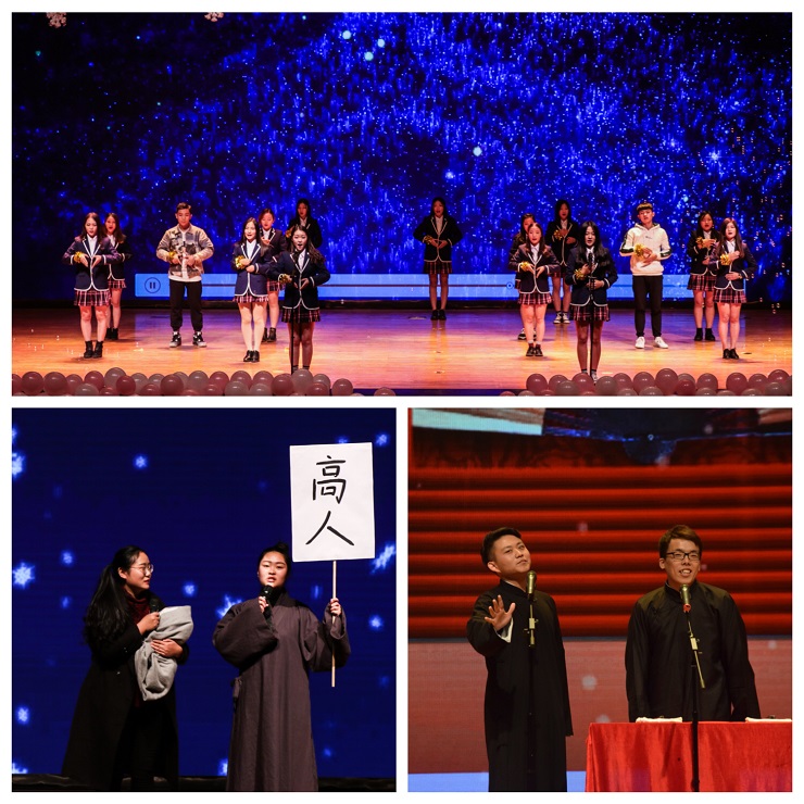 一首由杨欢带来的《画心》又将现场气氛重新点燃。风趣幽默的相声《智取威虎山》则是亮点迭现,妙语连珠,台词幽默风趣,引得台下掌声不断。《致橡树》的朗诵致敬我们爱的人。舞蹈《Look me》如冬日里的一把火点燃我们的激情,让青春永留。小品《逆行人生》让我们领略到了逆行下的浪漫故事。歌曲《小酒窝》使观众们体味到了爱情的温馨甜蜜。T台秀《Something In The Way You Move》让我们的耳旁再次回荡起冬日的恋歌。舞蹈《风筝误》娴熟的舞蹈,魅力四射,场下观众掌声不断。