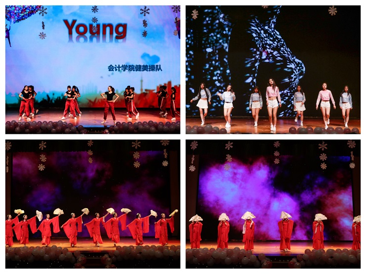 会计学院健美操队带来的舞蹈《Young》充分的展现出了会计学子的青春活力。紧接着辉腾创业者协会带来的歌曲串烧使观众回味无穷,甜美的歌声萦绕耳畔,久久不能散去。随后由守望你的宁听社团带来话剧《守望电台》聆听我们内心深处的声音,带给我们惊喜和感动,让我们铭记于心。歌曲《内疚》带领我们走进音乐殿堂,使我们明白做事只求问心无愧,不要回头。手语《虫儿飞》以无声的力量体现了古话无声胜有声。精舞门的舞蹈《风月》精彩绝伦,带给观众们美的享受。