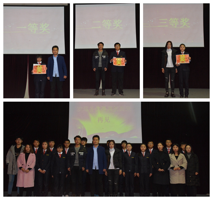 首先,全体起立向一二九运动中的先烈们默哀致敬。然后,团委书记兼行政秘书张娟老师为大赛作开场致辞,张娟老师表示希望通过本次比赛能够激发同学们的爱国热情。至此,比赛正式拉开帷幕。参赛选手们个个意气风发,用文字、图片、背景音乐、视频等依次展示了自己精心制作的PPT作品。参赛作品都别出心裁,图文并茂,各具特色,展现了党的奋斗历程和光辉历史,表达出对党的热爱、赞颂与衷心的祝福。同时又融合了各成员的不同风格,体现出他们认真的态度和尽职的精神。经过激烈的角逐,最终由软工3班杨华、电信1班张嘉成、郭静文分别获得一、二、三等奖。最终,本次大赛取得圆满成功。