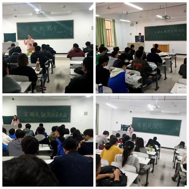 随后,建工学院通过展板、条幅、微信等方式,广泛宣传文明礼仪行为。建工学院全体辅导员通过主题班会的形式教育和引导,将微笑、行礼和问候贯穿于整个建工学院的日常生活和学习中。