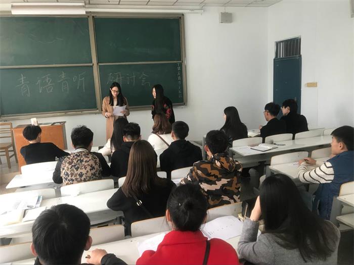 为了深入贯彻学习党的十九大精神,响应我校关于加强团委建设要求的号召。管理学院于2017年11月28日下午14:00在综合楼307教室开展本次青语青听研讨会。参加此次会议的有:院团委常务副书记齐利利老师以及团学会全体成员。