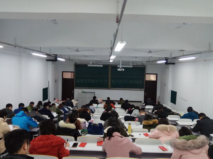 为深入贯彻党的十九大精神,结合我校创建文明单位工作实际,商学院于11月30日中午,组织全系教职工在实训大楼609教室开展贯彻十九大·创文明单位知识竞赛。商学院全体教职工参加了此次知识竞赛。