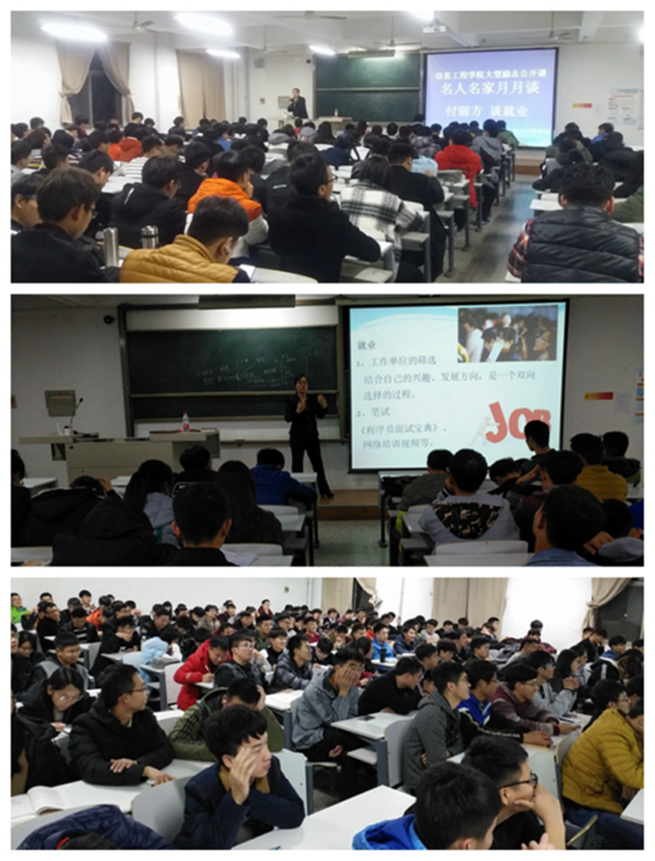11月30日晚上6:00,信息工程学院大型励志公开课《名人名家月月谈》于资讯楼415顺利举行。本次公开课由郑州瑞宏科技技术有限公司系统测试部经理付丽方女士主讲,我院学生参加本次讲座。本次讲座由袁奉亚老师主持。