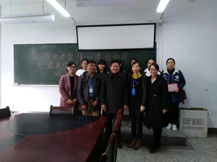 11月23日下午1:30,会计学院第二届“最美微笑”评选活动颁奖仪式在综合楼218会议室举行。会计学院党总支张红阳书记、会计学院行政秘书兼团委书记陈刚老师、会计学院行政秘书刘锦老师、会计学院心理辅导站站长乔焱宁老师、副站长余相静老师,以及心航路的部分社员参加了此次颁奖仪式。