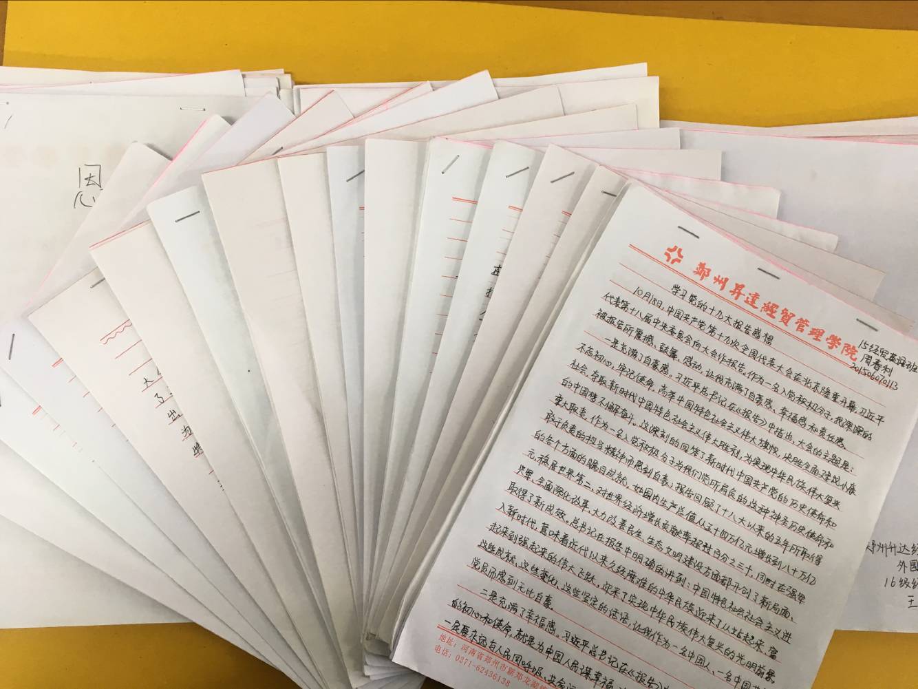 会后,结合辛教授的讲座,外国语学院党总支组织党员、培养对象及入党积极分子展开进一步学习,每个人都向党组织提交了学习心得,大家纷纷表示,要记住辛教授对我们提出倡议,学习十九大精神既要“高得上去”,准确把握十九大确立的新思想;又要“低得下来”,把自己摆进去,学出一份自信、一份忠诚、一份担当。每一代人都有每一代人的长征路,实现党的历史使命的责任落到了我们这一代人身上,能为之添砖加瓦无上荣光,要把人生追求融入伟大的事业,用担当的行动诠释对党和人民的忠诚。