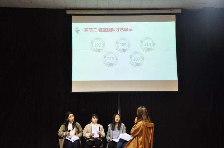 本次大赛共分为四个环节,分别为寝室主题展示,寝室团队展示,你比我猜,寝室安全知识问答。整场比赛环环相扣,精彩纷呈。寝室主题展示环节中,参赛队伍都精心准备了PPT,选手们的言谈举止不仅传递了满满的正能量,也展现了寝室成员之间的深厚友谊;团队展示环节中,选手们欢歌劲舞各展风采,汉语言二班代表队带来的小品《感染者》更是让同学们欢笑不断;寝室主题展示环节则向我们展示了选手们在一点一滴布置宿舍的过程;你比我猜环节充分展现了室友们之间的默契。寝室安全知识问答则考查了同学们对寝室安全知识的掌握情况,引导同学们关注寝室安全。比赛告一段落,由王松洁老师为本次比赛点评,王松洁老师提到宿舍文化分为学习、生活、交往、制度等方面,希望同学们互相学习,共同进步。最后,获得本次比赛一等奖的是17汉语言二班代表队,二等奖的是17新闻班代表队,三等奖的是17学前一班代表队,获得优秀奖的是17汉语言一班代表队,获得创意奖的是17学前教育二班代表队。由王松洁老师等人为获奖寝室颁奖并合影留念。本次比赛在欢声笑语中圆满结束!