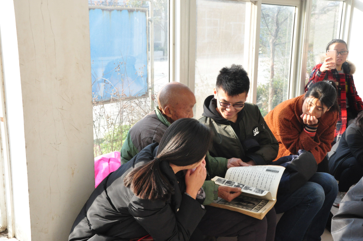 志愿者们一到敬老院,就受到了老人们的热烈欢迎。首先,志愿者们与老人进行简单的交流,询问了老人们的身体和生活状况。接着,他们为老人们表演了提前准备好的精彩节目。外联部的相声《赤壁小话》让老人们笑逐颜开,办公室准备的黄梅戏《天仙配》、青志协的豫剧《穆桂英挂帅》也赢得了老人们的阵阵掌声。看着志愿者们热情的表演,老人们也被感染,为同学们表演了快板和豫剧,让同学们深深地感受到他们年轻的心态和乐观精神。接着,同学们一边为老人捏肩捶背一边陪老人们聊天,老人们给同学们讲述了旧社会与现在生活的巨大差异,让同学们感受到社会主义的伟大,陪老人们闲话家常的过程温馨而有爱。最后当志愿者们离开时,老人们都依依不舍地与同学们告别,并期待同学们下一次的到来。