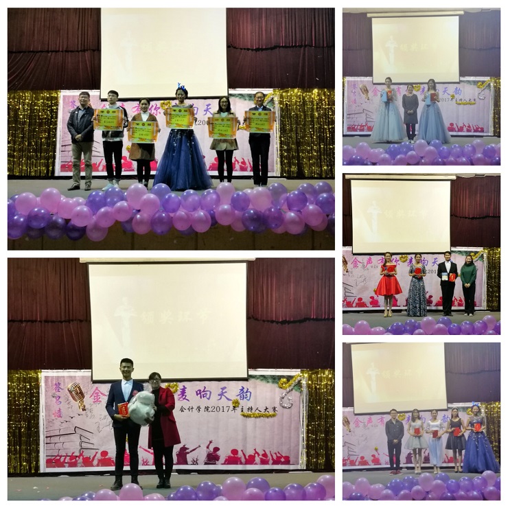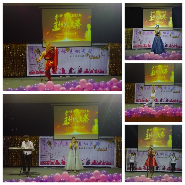 妙语连珠彰显语言魅力,舌吐莲花展现主持风采。为了给每个怀有主持梦想的大一新生提供展现自我的舞台,11月14日晚6:30,由会计学院团委主办、学艺部承办的“金声有你,麦响天韵”——第八届主持人大赛决赛于龙湖报告厅拉开了帷幕。出席此次比赛的嘉宾有:会计学院行政秘书兼团委书记陈刚老师,17级心理辅导站副站长、辅导员余相静老师,17级辅导员支园园老师,团委副书记董雪,学生会主席赵宁,社联理事长撖帅博,书记助理黄犇,学生会副主席郭银帆、邓凯戈;校主持队队长李恺,22届学艺部部长吴京东,23届主持队队长张高,副队长王炳翔、张艺薷,23届演讲队队长崔林玉。