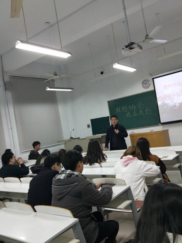为了引导同学们有更强的创新、创业意识,同时给有创新意识、创业想法的同学提供一个平台使其能够在此相互交流,相互探讨。在石皓召书记的指导下,双创协会经过四个月的筹办终于成立了。本次活动主要有三部分流程,首先由正秘书长郑森森为大家讲解双创协会的章程,并对双创协会的概况进行讲解。其次由副秘书长孔祥晔、梁晴、李玉珂、朱凯迪各自介绍自己所负责的那部分,使大家对双创协会有一个更具体的了解。最后,由石皓召书记为大家讲解“双创”的含义及创立双创协会的目的。