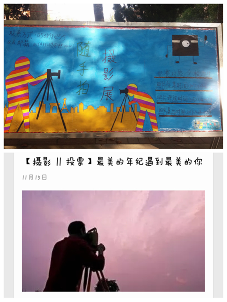 本次活动历时两周,分为前期宣传、作品征集、线上投票、作品展示四个阶段。过程中,综合运用展板、微信平台、微博、百度贴吧等多种方式加强宣传,吸引众多同学参与到活动中来,纷纷用相机记录下精彩瞬间,报名截至时共征集到100余份作品。 最终通过我院主席团评选与线上投票相结合的评选方法,评选出十一副优秀作品。