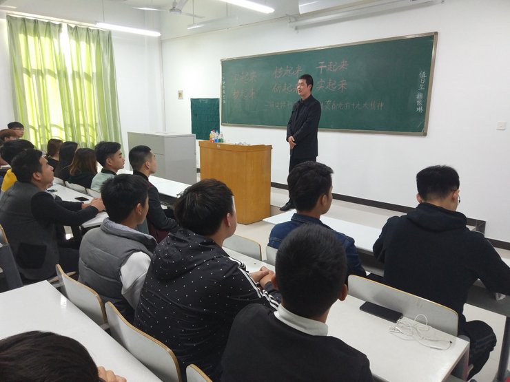 2017年11月10日,在实训楼406教室,建工学院组织第六期入党积极分子,召开一场名为“学起来 教起来 传起来 研起来 干起来 实起来——用实际行动学习宣传贯彻党的十九大精神”的主题动员会,本次会议由建工学院体育学院党总支书记韩炎涛主持。