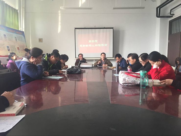响应校党委号召,为培育和践行社会主义核心价值观,大力弘扬社会道德风尚和中华传统美德,挖掘、宣传我校涌现出的先进典型,形成崇德向善、见贤思齐、德行天下的浓厚氛围。2017年11月15日下午四点在商学院会议室召开了“感动新郑”人物推荐会,商学院院长孙卫东教授、党总支书记宋维清同志、副院长田振中副教授、行政秘书兼团委书记郭峰老师、教学秘书王璐老师以及全体教师和辅导员参加了此次会议。