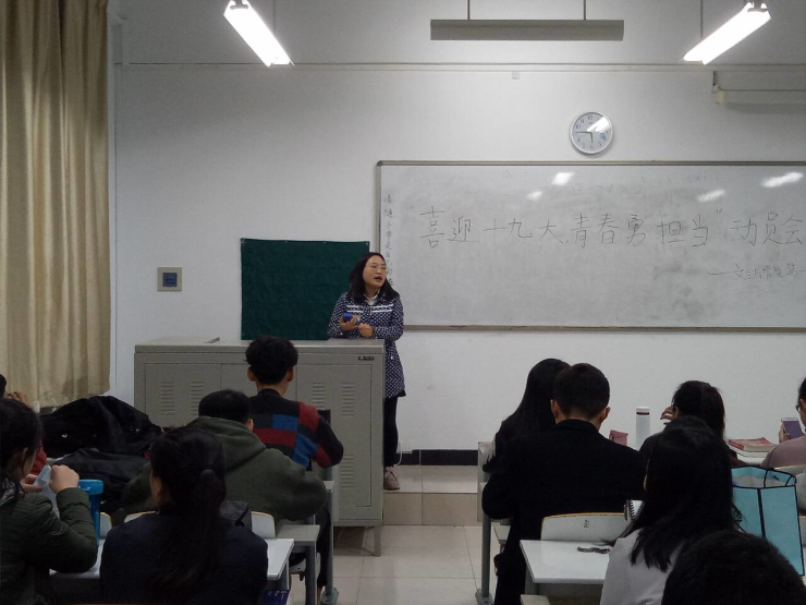 在动员会上,彭老师带领同学们对十九大部分内容进行了学习,号召同学们继续利用课下时间进行学习,利用新媒体等多种渠道学习和宣传十九大精神,及时总结自己的感受和想法,同时带动身边更多的同学和朋友们学习和贯彻十九大精神。