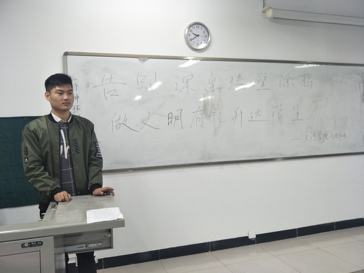 为深入落实“学习十九大,青春勇担当”活力团支部创建活动,发挥班级团支部影响力、号召力、凝聚力,发挥团员青年自我教育和自我管理能力, 11月16日文法学院15级法本团支部在道镕楼324开展了活力团支部创建活动之“告别课桌墙壁涂鸦,做文明有礼升达学生”。