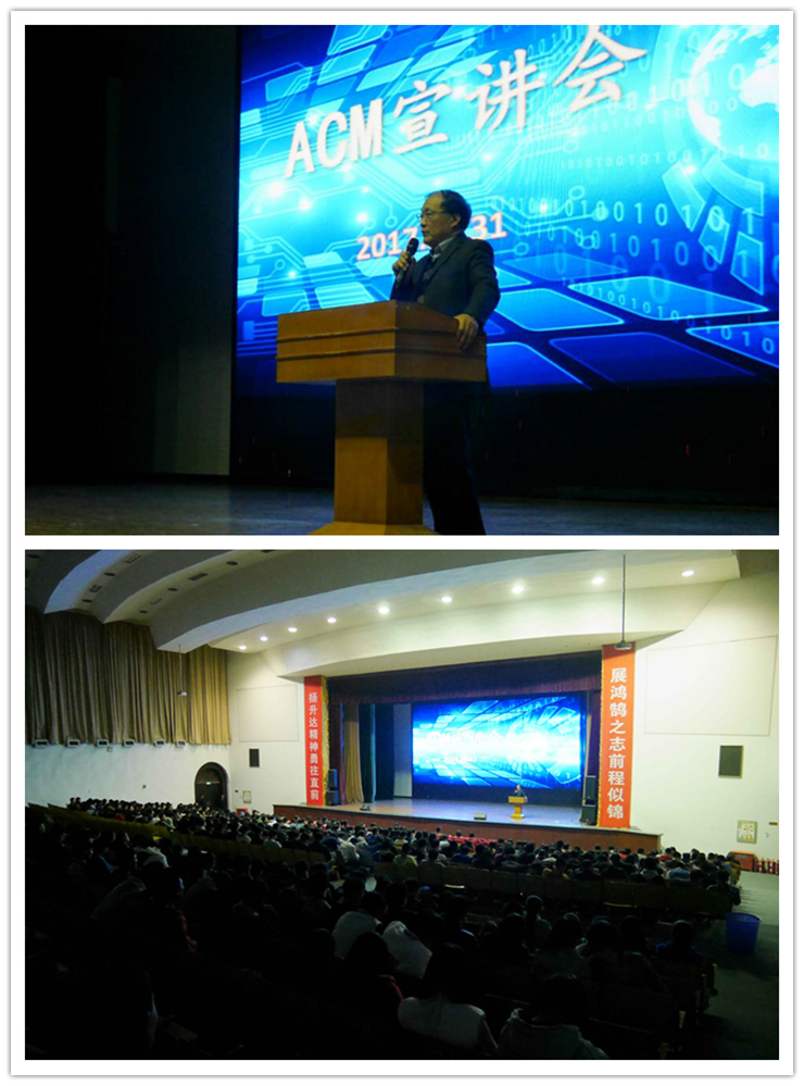 10月31日晚上7点,信息工程学院ACM协会在思源会馆进行了ACM宣讲报告会。参会人员包括我院2017级全体新生,信息工程学院主任李学桥教授、吕宗芳副教授、许金梅副教授、指导老师赵少林副教授和盛光磊副教授也出席了本次宣讲会。