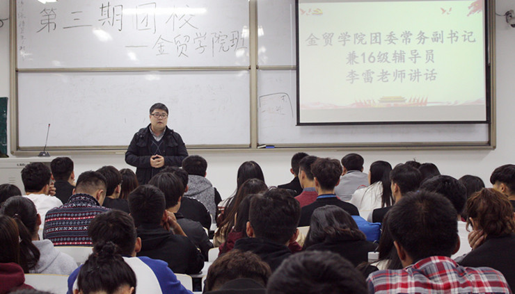 2017年11月1日中午12:30伴我校二十四年校庆之际,我院团校金贸学院班的开学典礼也在道镕楼118教室隆重开幕。到场的领导老师有金融贸易学院团委常务副书记兼16级辅导员李雷老师、金融贸易学院17级新生辅导员苏浩老师、常单单老师、徐依凡老师。金融贸易学院团委副书记李征宇、金融贸易学院学生会主席李浩天、副主席李丽娜、郭晓阳、校团委组织部副部长王晓东、校团委组织部部长助理马玉龙、及2017级金融贸易学院新生班干部,我院团学生会干事代表等纷纷参加我院团校开学典礼。
