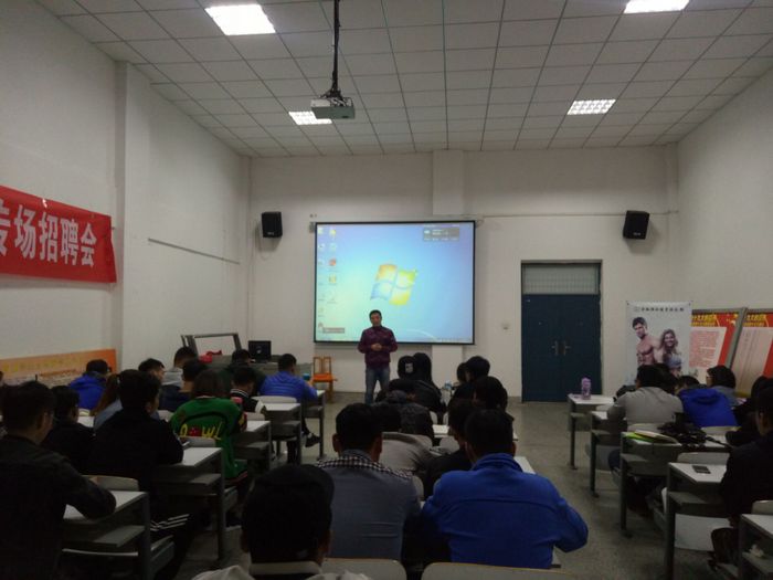 招聘会伊始,体育学院党总支韩炎涛书记进行讲话,他对郑州金祥健身服务有限公司莅临我院举行专场招聘会表示热烈欢迎,并预祝招聘会成功举行。接着,辅导员高建涛对体育学院全体学生介绍了郑州金祥健身服务有限公司,他希望我院毕业生以积极的心态求职,以饱满的精神进行面试。