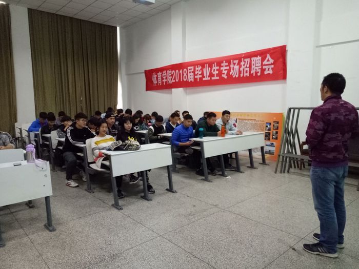 10月31日下午,郑州金祥健身服务有限公司莅临体育学院举行专场招聘会。招聘会在体育馆多媒体教室举行,体育学院2018届全体毕业生以及15级、16级学生参加了招聘会。