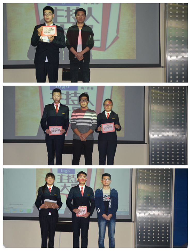 主持人介绍完比赛规则之后,本次大赛正式拉开帷幕。本次大赛共分为四个环节:自我介绍、模拟主持、才艺表演、评委打分。通过之前的初赛,最终有王阳阳等六位同学进入决赛。首先,在自我介绍环节中,同学们语言或稳重或幽默,完美的展现自己。接着,在模拟主持环节中,短短的三分钟的时间里,同学们进行场景模拟主持,展现了他们扎实的语言功底和各具特色的主持风格。其次,在才艺表演环节中,参赛选手精彩的才艺表演将大赛推向高潮。最后,通过评委的综合打分评出此次大赛的一、二、三等奖。为此,本次大赛成功拉下帷幕。