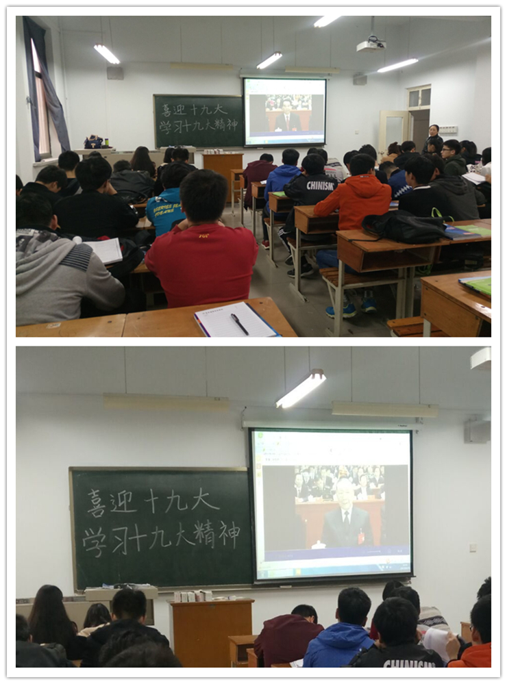 在座谈会中,16级团总支书记牛堃老师向大家传达要“登高望远、勇于创新,永不僵化、永不停滞”的理念。今天,我们比历史上任何时期都更接近、更有信心和能力去实现中华民族伟大复兴的目标。在观看十九大直播中,大家热切讨论,同学们热议如“从国家领导人进场以至讲话中语气的强硬,便能感觉到祖国的强盛。”、“感觉热血沸腾,心潮澎拜以及发自内心的自豪感。”、“心里为祖国的繁荣昌盛点赞,为中国共产党的伟大领导点赞。”等等评论。