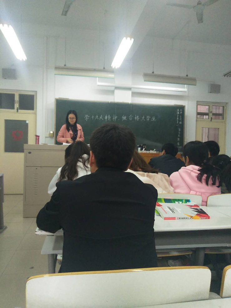 其次,结合同学们的发言,张老师鼓励同学们关注党的十九大会议,她与同学们的各个方面息息相关,比如就业、考研、创业、网络、教育、环境等与当代大学生利益密切相关的政策规定和政策变化。
