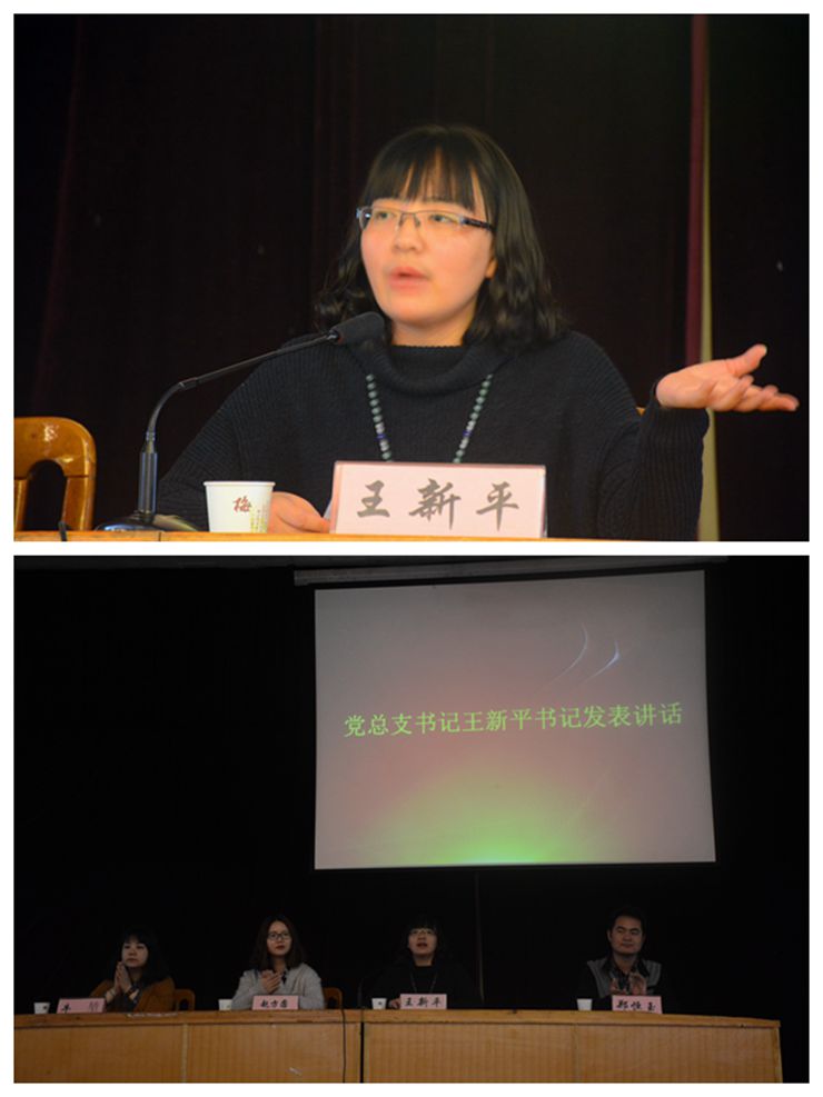 最后,党总支书记王新平书记做了重要讲话。书记向同学们罗列了部分往届团学干部学生的佳绩并且鼓励新生奋发图强。同时,她希望大家能够做到以下几点:一、政治信仰要坚定,不在校园里进行各种传教等活动;二、要积极进取,做本领高强的标兵;三、要严于律己,做一名合格的团学干部。四、要学会创新,经常举办具有特色的团学活动。之后,书记还希望同学们能够始终不忘初心,坚持自己的理想。王新平书记的精彩演讲将大会推向了高潮,使在场的同学们受到了极大的鼓舞与启发。