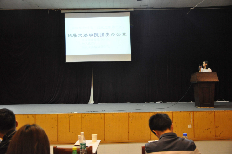 为了保证文法学院团委学生会工作更好地开展,壮大团委学生会干部队伍,充分发挥学生的主体作用,2017年10月12日,文法学院团委学生会于龙湖报告厅举行了招新宣传大会。出席此次活动的嘉宾有文法学院行政秘书兼团委书记郑玲玲老师,文法学院团委常务副书记彭凯老师,14级团总支书记刘建辉老师,15级团总支书记张明奇老师,17级辅导员王卫丽老师、王松洁老师,第16届团学主席团全体成员、团学干部以及17级全体新生到场观看。