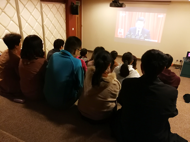 习近平总书记的报告指向鲜明、内涵丰富,具有很强的思想性、战略性、前瞻性、指导性。在收看过程中,图书馆同仁都聚精会神,不时为习近平总书记的报告所打动、所鼓舞。收看结束后纷纷表示一定认真学习,深刻领会“十九大”报告,坚决贯彻落实“十九大”精神,并以此为指导,增强实干意识、责任意识、创新意识,不断学习,积极工作,努力为读者提供更加优质的服务,为建设书香校园与和谐校园作出积极贡献。