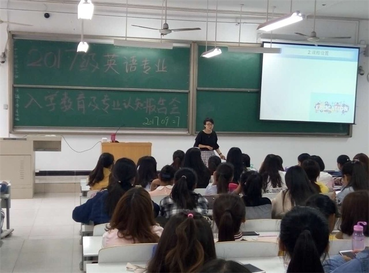 9月27日上午10:30,在时金楼-108,外国语学院英语专业2017级新生入学专业教育隆重举行。活动由教研室主任张丽梅老师主持。