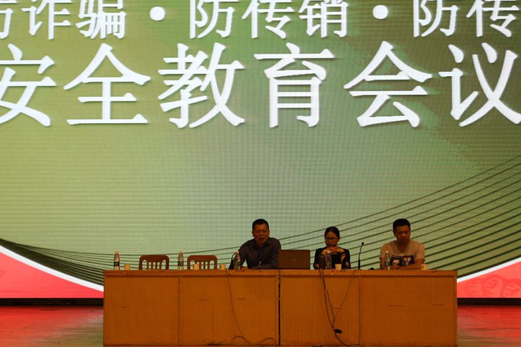 2017年9月28日下午,商学院在思源会馆成功召开了“防诈骗、防传销、防传教”安全教育会议,参加此次会议的有商学院院党总支书记宋维清同志、副院长田振中副教授、商学院寇玉琴教授、教学秘书王璐老师、行政秘书郭峰老师、各新生班辅导员以及17级全体新生。