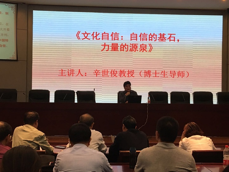 报告中,辛世俊教授结合深厚的理论功底和鲜活的事例,重点从文化自信的含义、文化自信是自信的基石、文化自信是力量的源泉三个方面进行了讲解。“龚自珍说‘灭人之国,必先灭其史’,梁启超认为‘史学者,学问之最博大而最切要者也,国民之明镜也,爱国心之源泉也。’”讲座中,辛教授引经据典,让大家充分认识到文化是一个民族的历史记忆,它关乎民族的前途和命运。一个没有历史记忆的民族是没有前途的。他还从中华优秀传统文化、党和人民伟大斗争中孕育的革命文化、社会主义先进文化三个层面深刻阐释了文化自信中“文化”的内涵。正常报告会,辛世俊教授旁征博引、深入浅出地系统诠释了习近平总书记提出的“文化自信,是更基础、更广泛、更深厚的自信,是更基本、更深沉、更持久的力量”的深刻内涵和历史渊源。